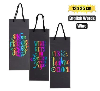 Gift-bag ppr wine eng words 13x35cm blk