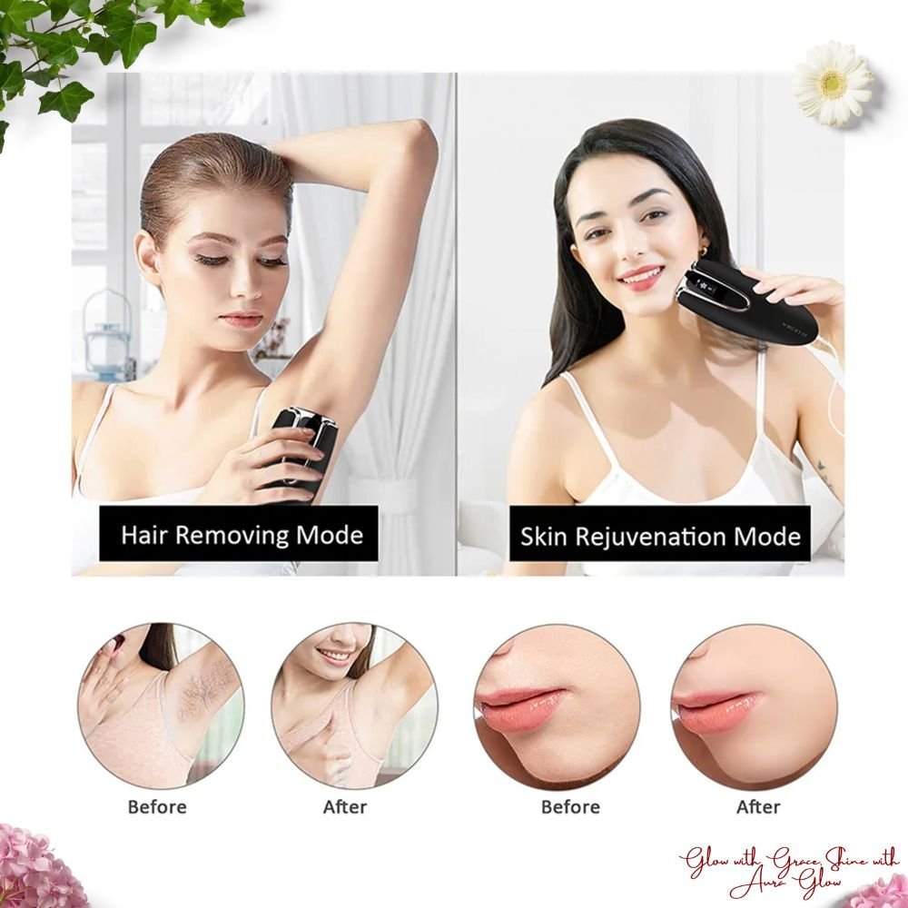• Revolutionary IPL Technology: Experience the future of skincare with our advanced Intense Pulsed Light (IPL) technology. The AuraGlow IPL device is your at-home solution for achieving salon-quality hair removal and skin rejuvenation. Say goodbye to unwanted hair and hello to smooth, radiant skin.